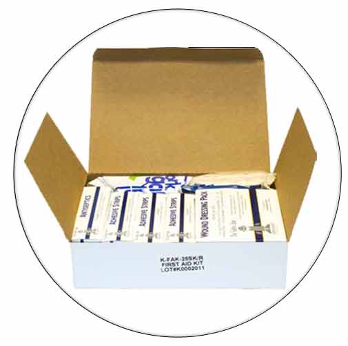 Complete content refill for our 25 person and 50 person First Aid Kits. The refills come without the plastic or metal case of the same person kit. Just the complete refill to keep your kits up to date and compliant.